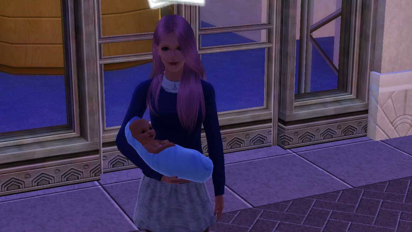 Then, Zoe left his son in the snow again, so that he could age up. The poor baby was freezing, but he aged up well, and got a little makeover thanks to the clothes that they had purchased a couple of days ago. He was a lovely baby, but he was very tired, so he took a nap before starting to learn new things.